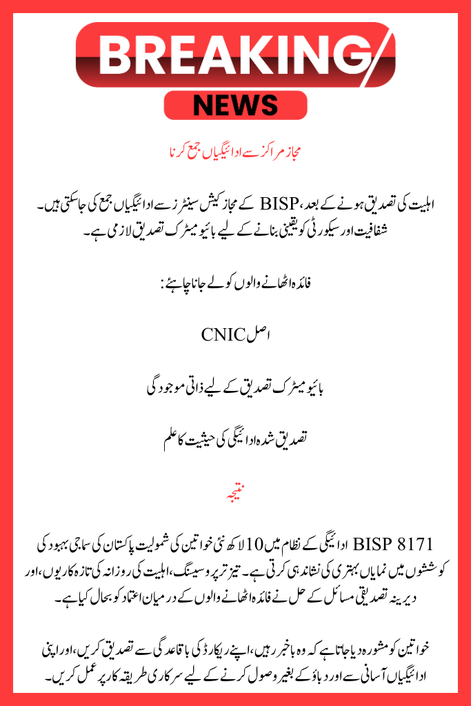 Once eligibility is confirmed, payments can be collected from authorised BISP cash centres. Biometric verification is mandatory to ensure transparency and security.
